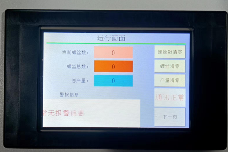 产品螺丝数:显示一个产品的螺丝数量(可根据产品自行调节 清零:将螺丝数量与产品的数量清零 )